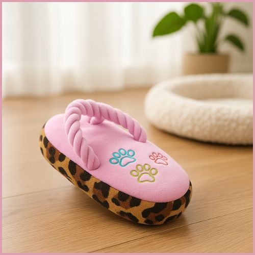 Quand l'ennui s'installe, votre chien cherche naturellement à s'occuper. Et malheureusement, vos objets personnels deviennent souvent ses cibles préférées. Notre jouet chien en forme de tong répond à son besoin naturel de mâcher tout en détournant son attention de vos précieuses possessions. La texture spécifique et le couineur intégré captivent instantanément son attention, redirigeant son énergie vers un objet approprié. Avez-vous déjà remarqué comme votre compagnon semble attiré par vos chaussures ?